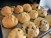 Habe sie heute nochmal mit Vollkornweizenmehl gemacht....weniger Zucker, mehr Rosinen. Der Teig lässt sich wunderbar verarbeten... ein Gedicht!!