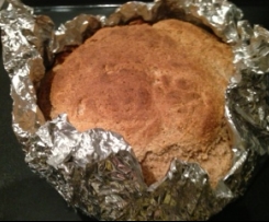 Ich wickel das Brot nicht ein, sondern decke es nach Gefühl mit Alufolie ab.