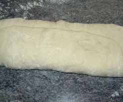 Die Teigkugel zu einem Rechteck auseinanderdrücken.