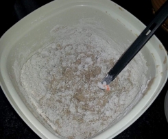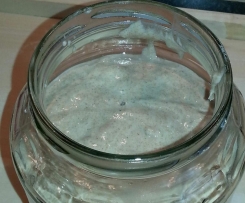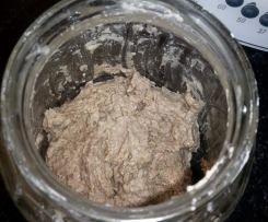 Bei Bedarf den Ansatz mit so viel frischem Mehl füttern, wie er eigenes Gewicht hat. (gleiche Menge lauwarmes Wasser)