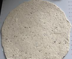 " Modus „Teig kneten“" zu einem glatten Teig verkneten. - Teig auf bemehlter Arbeitsfläche (oder Silikonmatte) rund (ca. 30 cm Durchmesser) ausrollen.