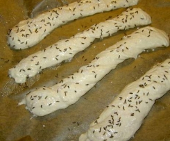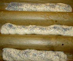 ...oder mit Mohn, Sesam o.ä. auf ein normales oder Baguetteblech legen.