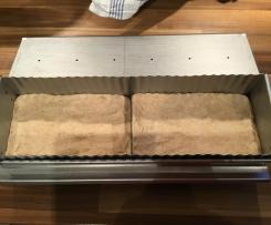 Dann mithilfe einer Waage den Teig teilen und in die mit Backtrennmittel (oder Butter oder Margarine) eingefetteten Toastbrotformen geben und gleichmäßig verteilen. ( Auch die Ecken nicht vergessen!)