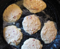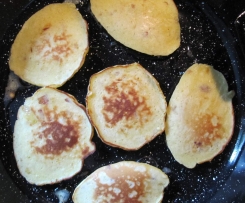 Fett in einer Pfanne erhitzen und jeweils 2 Esslöffel Teig hineingeben.