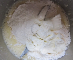 "Linkslauf" / St. 2-3 unterrühren. Ich habe den Teig jetzt umgefüllt, weil ich ihn dann besser portionieren kann.