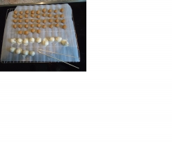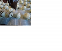 Die weiße Schokolade in Stücken in den Mixtopf geben und 10Sek./Stufe 10 pulverisieren. Bei 50Grad/5 Min./Stufe 2 schmelzen. Die Kugeln (mit einem Schaschlickstäbchen anpieksen geht einfacher, oder noch besser mit einer kleinen Gabel eintunken) in die weiße Schokolade tauchen. Auf ein Backpapier zum trocknen legen. Wer will kann die Vollmilchschokolade 10Sek./Stufe 10 mahlen und in einen Gefrierbeutel geben. Die Schokolade im heißen Wasserbad zum schmelzen bringen und eine kleine Ecke abschneiden. So kann man die Kugerl am besten mit kleinen Streifen verzieren. Wers ganz extravagant mag kann die Kugerl auch in kleinen Pralinenpapierförmchen servieren.