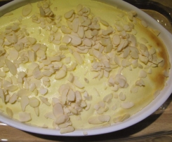 Im heißen Ofen ca. 55 Minuten backen. Ca. 5 Minuten vor Ende der Backzeit die Mandeln darüber streuen. Im Originalrezept ist die Backzeit mit 30-40 Minuten angegeben, aber das reicht bei mir nicht.