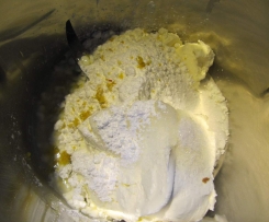 Restlichen Frischkäse und Zucker hinzufügen und weitere 20 Sek. / St. 4 verrühren.