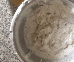 Zuerst nach bekanntem Thermomix Rezept die kalte Sahne steif schlagen.
