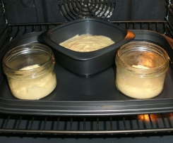Im vorgeheizten Backofen in eine Schale mit Wasser stellen,