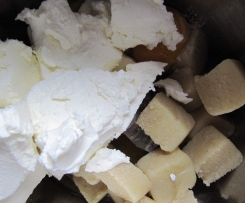 Marzipan, Grieß, Eier und Mascarpone oder Frischkäse in den