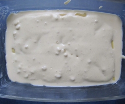 Die Soße darf ruhig gleich gekocht werden, wenn die Lasagne im Ofen ist. Es macht nichts, wenn sie nur noch lauwarm ist. Man kann die Lasagne auch schon gut Stunden vorher zubereiten und erst später backen. Dann gibt es die Soße eben kalt dazu. Diese wird allerdings recht fest, je kälter sie ist. Wer das nicht so möchte, der bereitet sie mit mehr Flüssigkeit oder einem 3/4 Päckchen Vanillepudding zu.