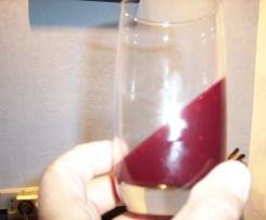 Das reine Gelee hat unseren Geschmack jetzt nicht ganz getroffen, ich werde es mal mit Sauerkirschen testen, die dann als ganze Früchte bleiben, anstatt die Beeren im Sieb zu zermalmen.