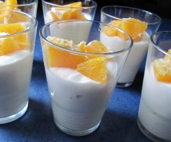 "Mixtopf geschlossen" geben und 7 Sek. / St. 4 verrühren. Je nach Geschmack noch etwas nachsüßen. - Die Quarkcreme in sechs Gläser (meine haben eine Fassung von 220 ml) füllen und die Orangenstücke darauf verteilen.