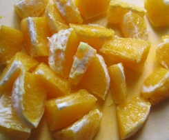 "Mixtopf geschlossen" geben (ich habe noch eine weitere halbe Orange ausgepresst, es waren dann 75 g Saft - dadurch wird das Dessert laut der Kommentare manchen etwas zu flüssig, also je nach Konsistenz des Joghurts vielleicht etwas weniger Saft nehmen). - Die zweite Orange (oder bei mir die 1 1/2 Orangen) schälen und in Stücke schneiden.