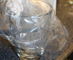 - Vorbereiten: Gefrierbeutel mit einer Ecke nach unten in ein Glas stecken und oben nach außen umschlagen