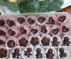 - Schokoladenmasse in den Beutel einfüllen, Ecke abschneiden und die Pralinenformen füllen.