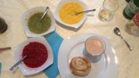 "Mixtopf geschlossen" sauber sein muss in Schritt 4, habe ich zunächst drauf verzichtet. Fehlanzeige. Sahne mit Schmetterling in der Masse 200g wie angegeben, darf nur circa 40 Sekunden auf Stufe 3 geschlagen werden (je nach Temp.u.Art auch ein paar Sekunden mehr), sonst erhält man Butter, wie in meinem Versuch. Hier fehlte mir auch die Angabe, ob es H-Sahne war, die verwendet wurde oder Frische. Was eben Auswirkungen auf die Schlagdauer hat.....also Thermi gereinigt, nochmal 200g Sahne mit Schmetterling gestartet und dann circa 44Sekunden geschlagen.