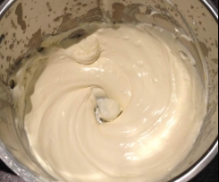 "Mixtopf geschlossen" 20-30sek/4 glatt rühren, auf Stufe 2 runterschalten und restliche Zutaten (Zitronenabrieb, Eierlikör, Milch) auf das laufende Messer durch die Deckelöffnung geben. Nochmal auf Stufe 4 kurz durch mixen.