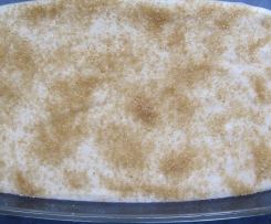 Die Masse in die Auflaufform füllen und mit dem braunen Zucker bestreuen.