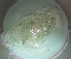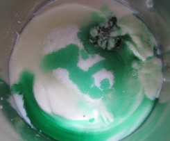Die Waldmeistercreme im Kühlschrank fest werden lassen (ca. 6 Stunden).