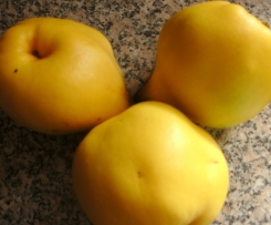 Quitten mit einem trockenen Tuch reinigen (der Pflaum läßt sich besser trocken abreiben),