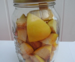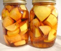 Quitten vierteln, entkernen, in Stücke schneiden und in die Einmachgläser geben; Gläser gut zur Hälfte füllen
