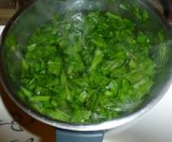 - 100-140 g frische Spitzwegerichblätter, (ca. 2 cm geschnitten)