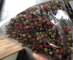 Mischen Sie die ganzen Pfeffersorten zusammen und vermischen Sie diese sehr gut.