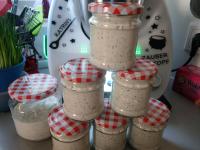 Bei mir ergab die Menge 6 kleine Gläschen a 200 Gramm und ein halbes großes.