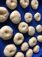 3. ich nehme einen in Wasser getauchten Esslöffel zum abnehmen einer Teig-Portion und forme mit nassen Händen die Klöße