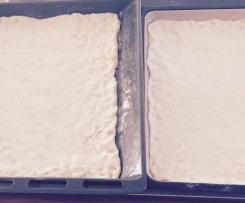 " Modus „Teig kneten“" und fertig kneten. Den Teig in eine Schüssel umfüllen und 30 Minuten gehen lassen bis er sich verdoppelt hat. In der Zwischenzeit 3 Bleche vorbereiten und mit Backpapier auslegen oder mit zerlassene Butter einfetten. - Teig in 3 Teile teilen und ausrollen als Blechkuchen.