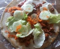 Da die kaufbaren Wraps total überteuert und geschmacklich durchgefallen sind, haben wir etwas experimentiert.