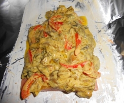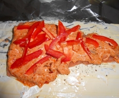 Habe das Gericht heute nachgekocht, mehr Paprika verwendet und das Ganze im Backofen in der Auflaufform gegart. War sehr schnell zubereitet! Die ganze Familie war begeistert. Das Rezept gibt es ab sofort öfters! Danke fürs einstellen!