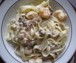 Super lecker! Habs nur mit Scampi und Lachs gemacht und würde lediglich etwas weniger Mehl nehmen. Wird Es wohl bald wieder geben...
