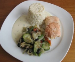 - 250 g Lachsfilet (TK), leicht angetaut