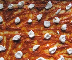 Werde beim nächsten Mal nicht die Hälfte der Pizzasauce nehmen, sondern etwas weniger.