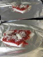5. Mit Oregano und dem zerkleinerten Parmesan bestreuen. Folie über dem Fisch und an den Enden schließen und im vorgeheizten Backofen garen.