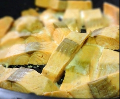 Man kann alles auch gut vorbereiten und dann einen Auflauf daraus machen: