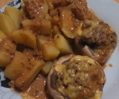 All in one Champignons gefüllt mit Hackfleisch , Kartoffeln und Soße Gefüllte Pilze