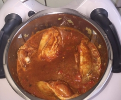 Hallo sehr lecker hab ich schon oft gemacht,auch für mehrere ,ich brate die Hähchenschenkel kurz an und lass sie dann entweder im Varoma oder wenn es zu Eng wird im Backofen garen,wir mögen die zerschredderten Hähnchente8le,die schmecken ganz besonders gut.hmmmm es köchelt grad für heute Abend ....ich freu mich schon...