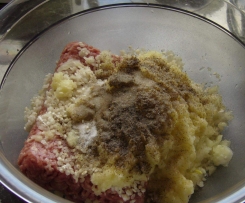 Das Gericht hat uns allen geschmeckt. Allerdings habe ich den Milchreis weggelassen und das Hackfleisch mit Ei, Paniermehl, Gewürzen und Majoran abgeschmeckt.