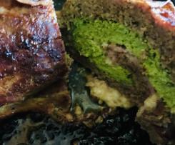 - Mit Hilfe des Backpapiers die Fleisch/Eimasse zu einer Rolle formen und in die gefettete Form legen.