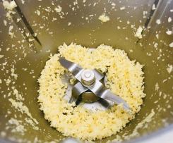 - Käse in den Mixtopf einwiegen 5 Sek./Stufe 5 zerkleinern und umfüllen.