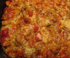 "Mixtopf geschlossen" in eine Auflaufform geben und gut vermengen. Käse draufstreuen und 30 Min / 200° / Ober unter Hitze im Backofen überbacken.