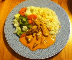Sehr lecker, aber man kann noch einiges verfeinern. Reis hatte ich viel zu viel. Und vom Garwasser waren bei mir nur 350g über. Meiner Tochter hat es auch geschmeckt. Nächstes Mal werde ich mehr Sauce machen.