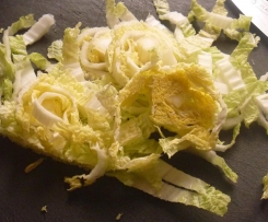 den Chinakohl in Streifen schneiden und beiseite stellen.