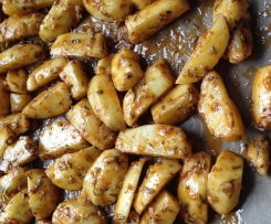 Habe die Kartoffelecken wie beschrieben zubereitet (unter Wasser abgebürstet und kleingeschnitten direkt auf's Backblech) Für die Marinade habe ich gemahlenen Knoblauch genommen, die frischen Rosmarinnadeln kurz kleingehackt (per Hand) und alles, wie angegeben allerdings mit einm Löffel im Schälchen vermixt. Dann auf die Kartoffelecken auf dem Backblech gegeben und ebenfalls mit den Händen ordentlich vermischt. Kamen dann für 30Min bei 180°C Umluft zum Brathähnchen in den Ofen. Dazu Sour Cream - ein Festessen. Sehr lecker!