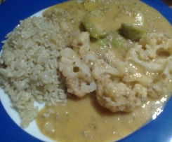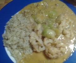 War sehr lecker. Soße passt auch zu nudeln. Wir haben tk ware genommen. Dann den rosenkohl zehn Minuten ehergaren und dann 30 min den blumenkohl.
