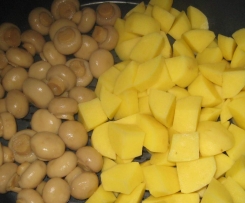 Kartoffeln schälen in würfel schneiden und in den Varoma geben und die Championgköpfe ebenso dazu legen.